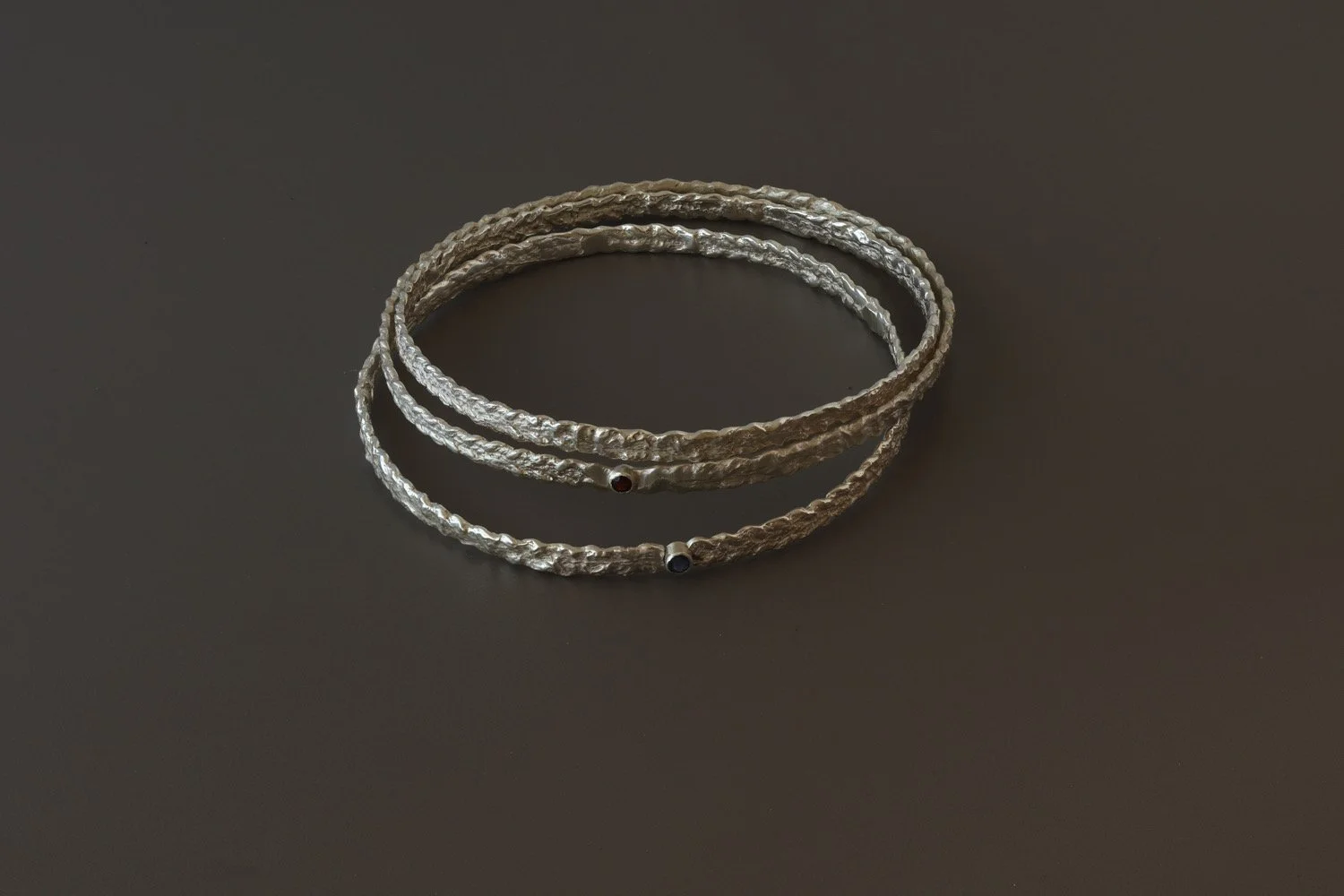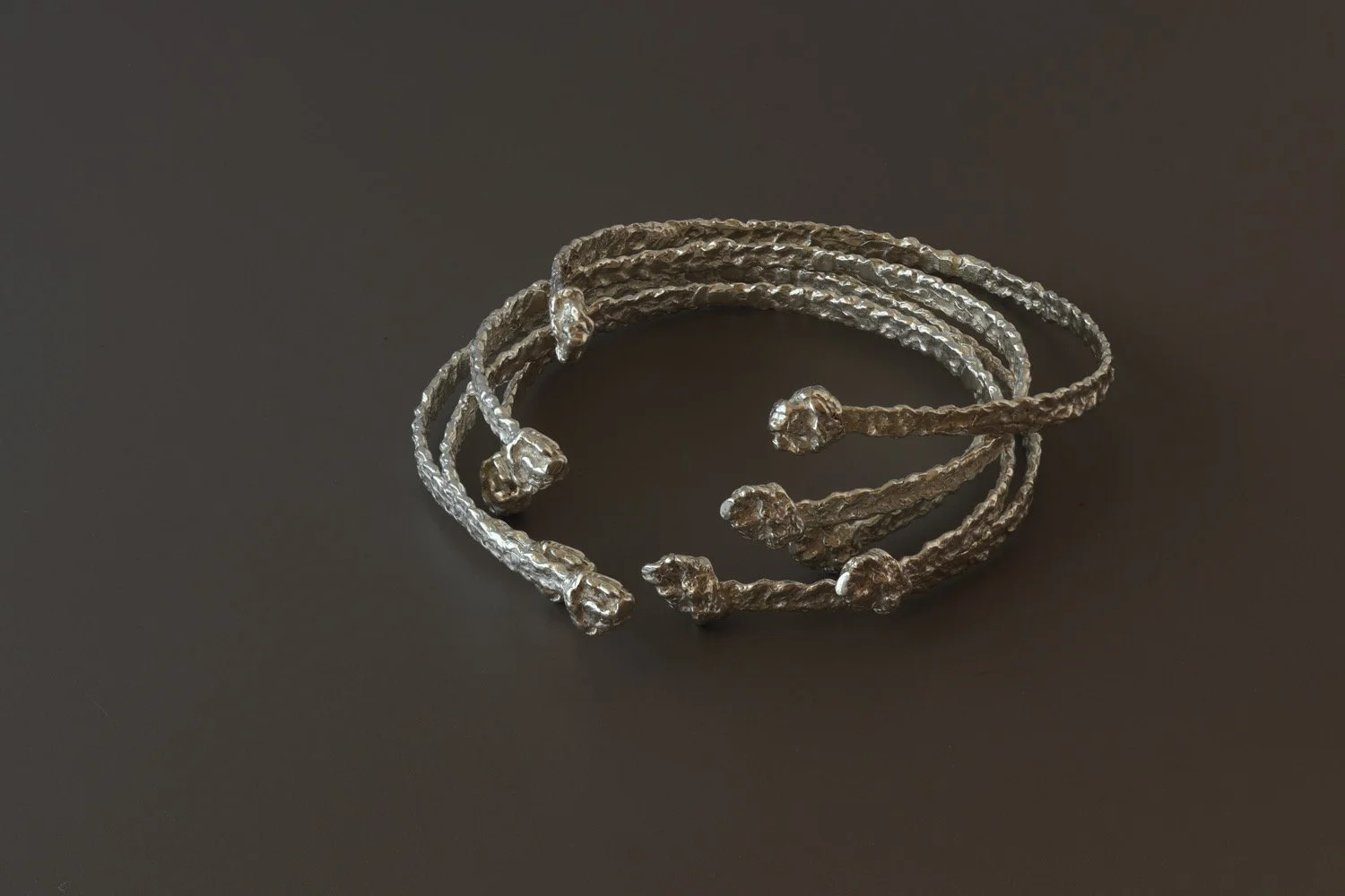 Sculptural and tactile, each bracelet is shaped to flow with the body. From bold cuffs to delicate bangles, these silver forms explore texture, balance, and the beauty of detail.
