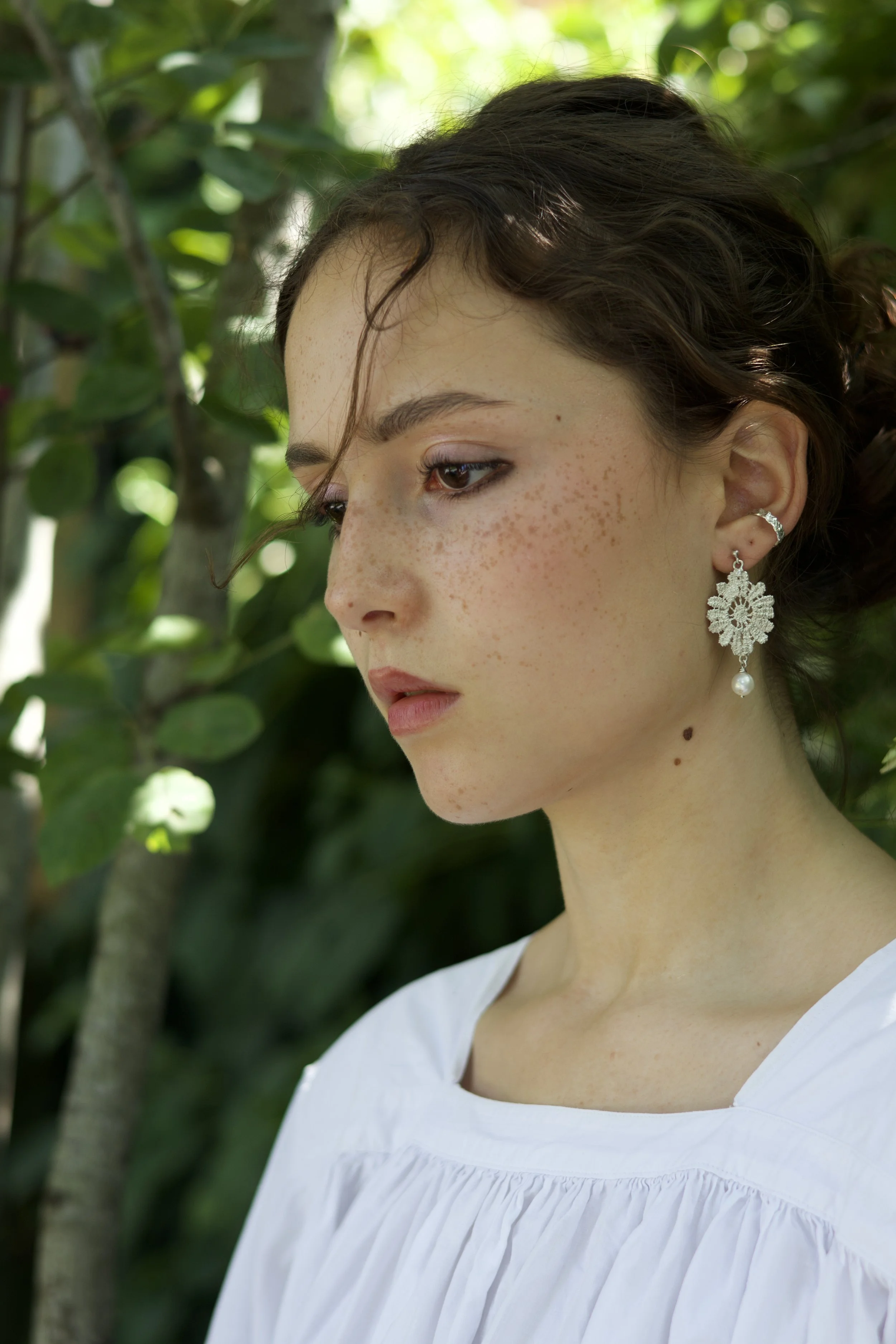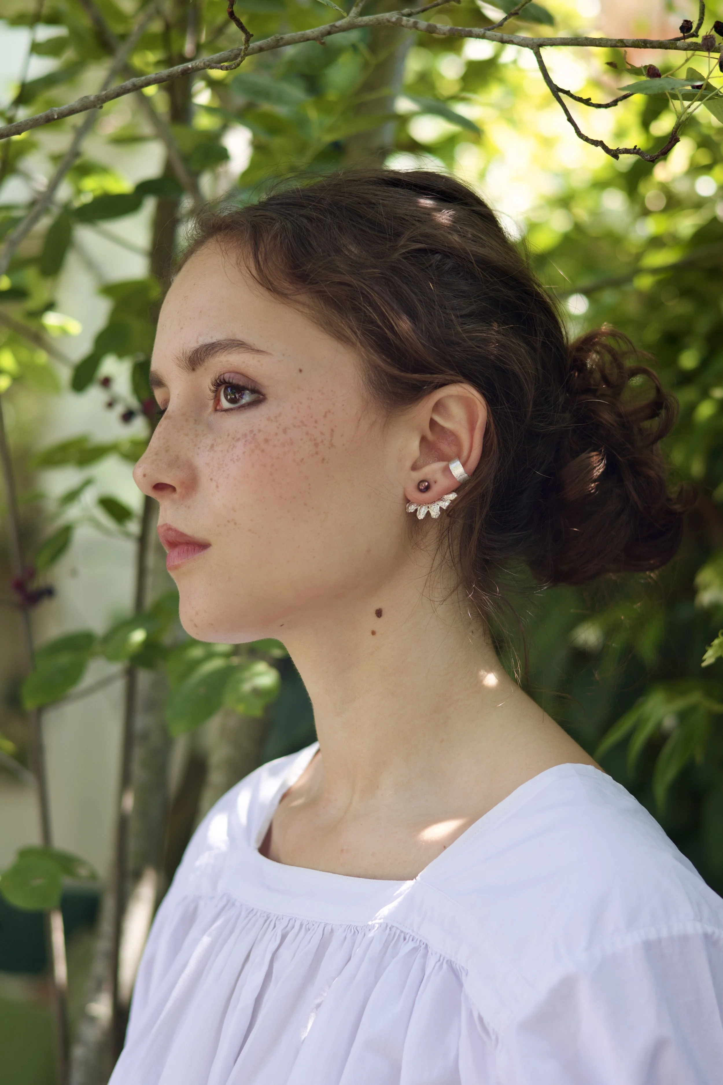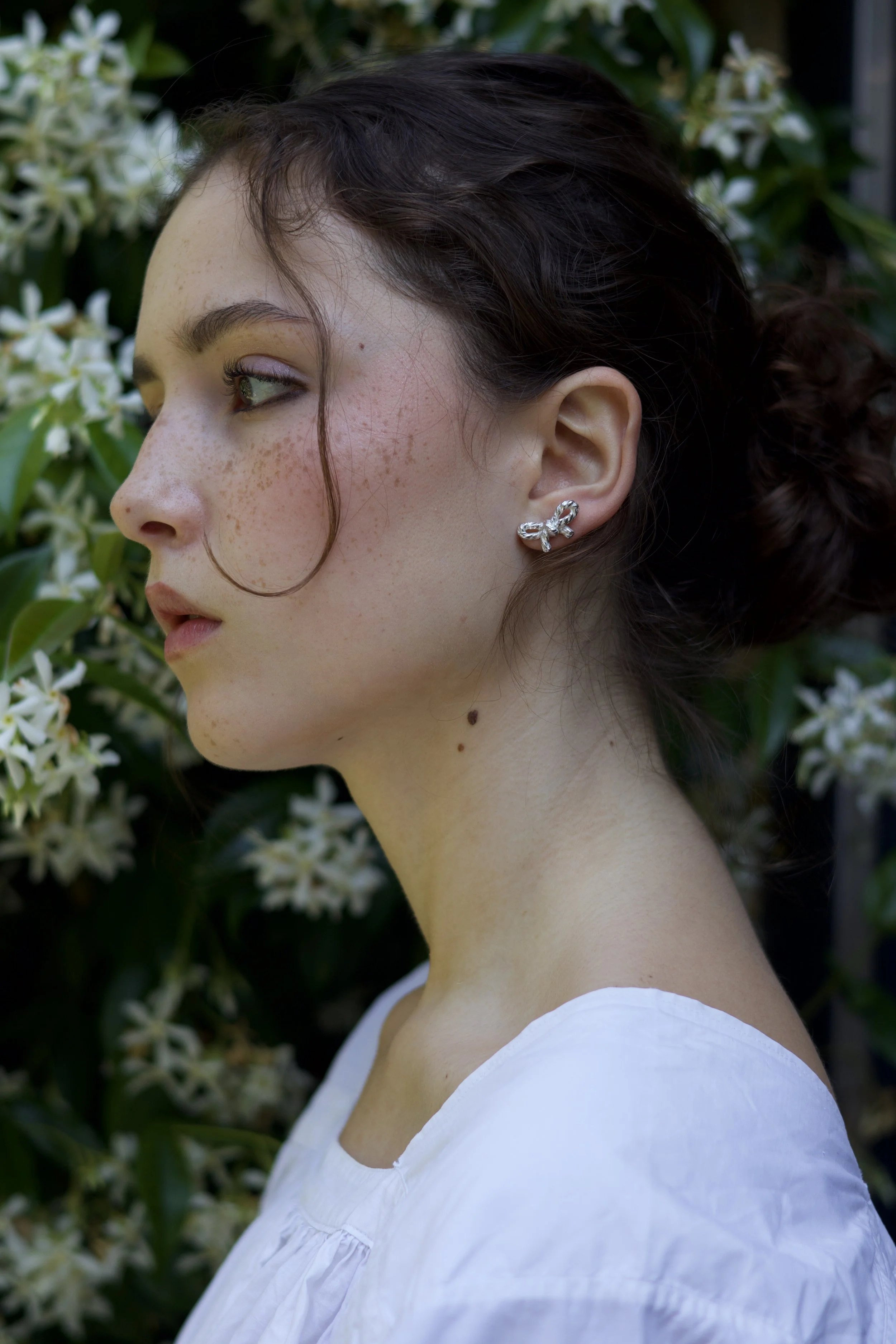 From simple studs to sculptural drops, each earring captures movement and light. Textural silver forms that frame the face with simplicity.