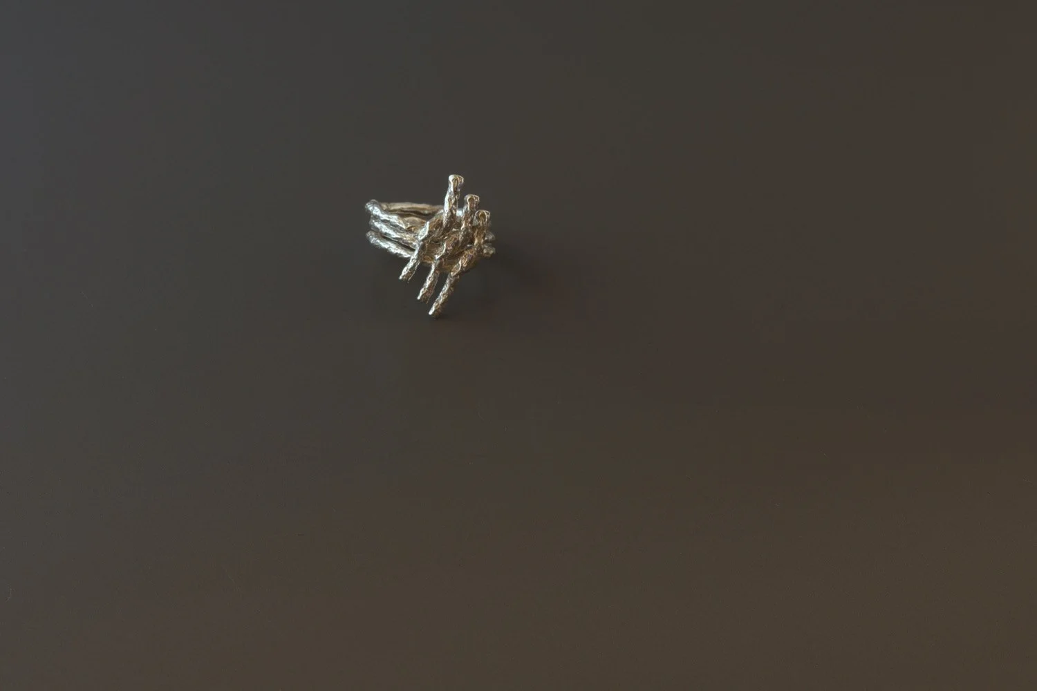 Each ring is a miniature sculpture, shaped by hand and cast in silver. Worn alone or in layers, they hold traces of texture, gesture, and individuality.