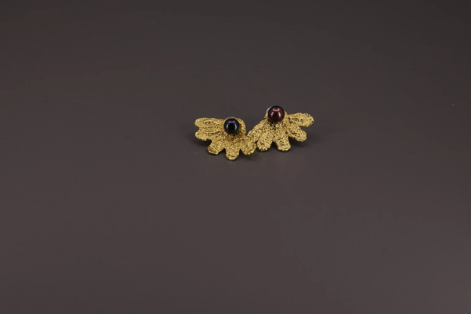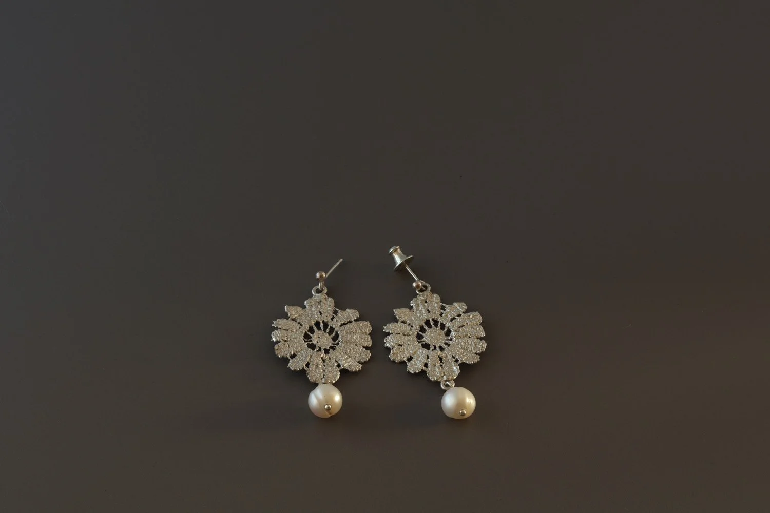 Sterling silver studs cast from the heart of a lace flower. By preserving only the center, the design distills lace to its essence — refined, simple, and contemporary.